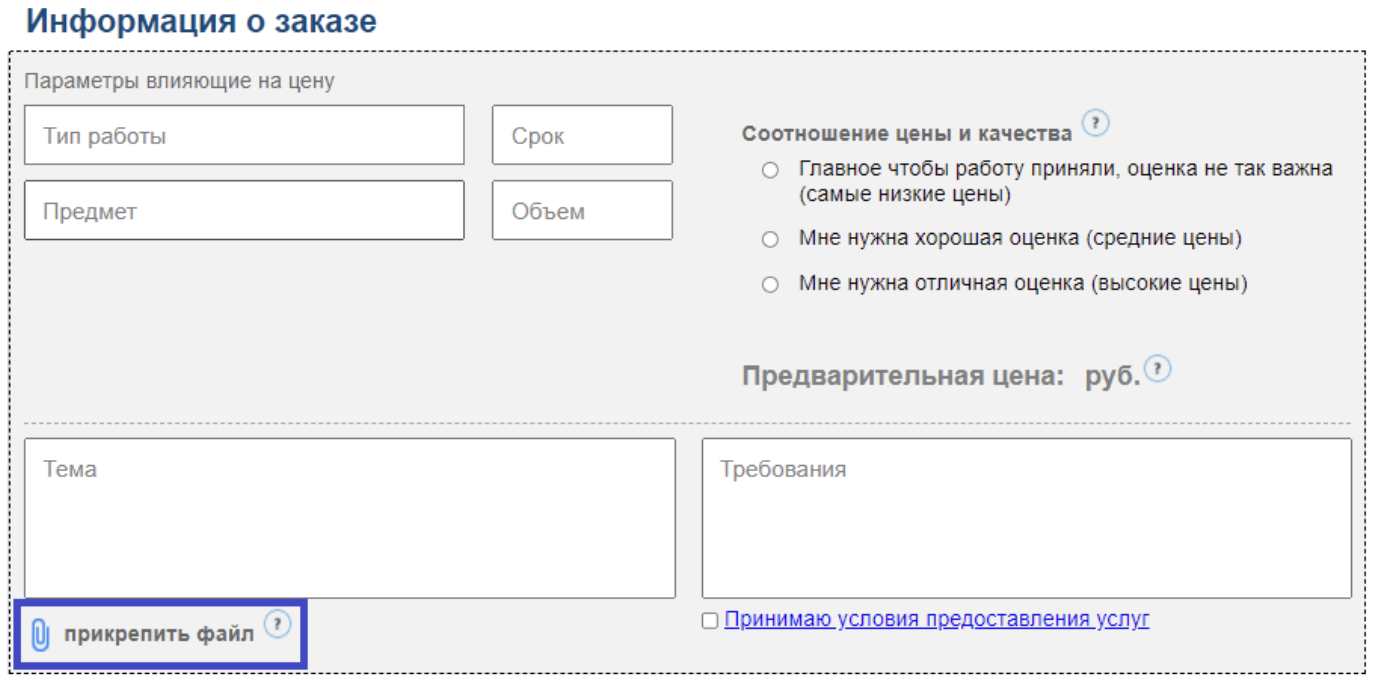 • для достижения наилучшего результата и экономии денег мы рекомендуем предоставить все имеющиеся требования к работе (методические указания, план, рекомендации преподавателя, список необходимой литературы и источников) уже при оформлении заказа;